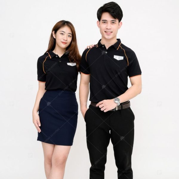 Áo phông cổ trụ chất liệu cotton 100%, logo in trước ngực + logo in ở mặt sau.